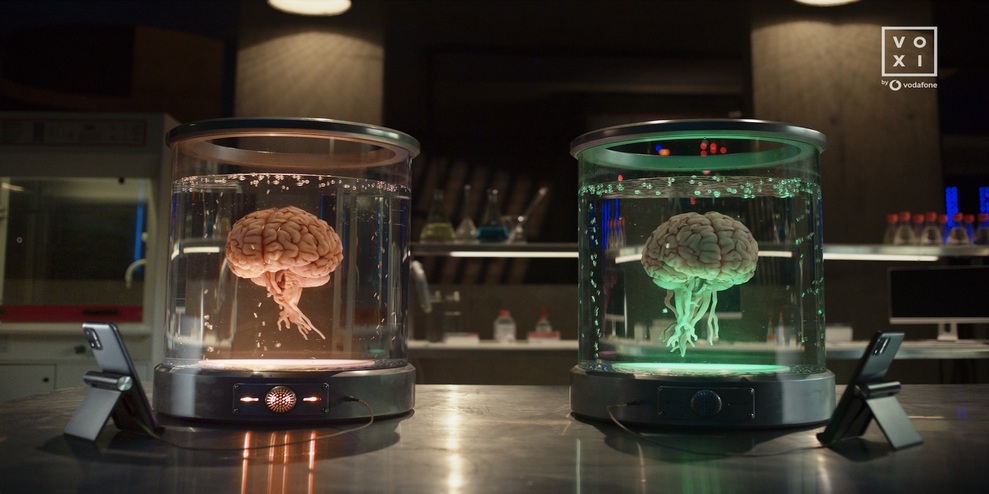 A pair of immortal, chatty brains floating in jars and sharing their views on Vodafone’s…