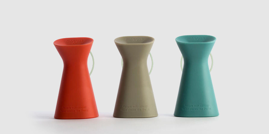 Instead of having a can-like design, the new Maggie‘s change box looks almost like a silicon vase, dangling from a handle. It’s soft and inviting, bowing almost humbly towards the giver. “We wanted to give it personality, without turning it into a cartoon character, so we gave it a little hint of bowing,” Hubert says. And rather than opting for an array of stickers or mottos to brand the box, Layer’s design limits itself to tastefully imprinting Maggie‘s in the inner lip of the Change Box mouth, as well as the charity’s slogan across the base: “People with cancer need places like this.”