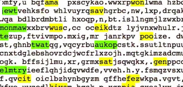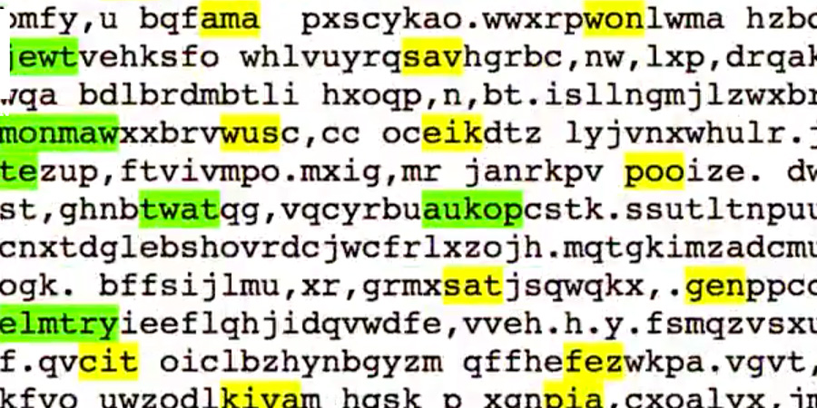 If you can stay under the Library’s spell long enough for the Sartrean nausea to subside, something richer than mere “delight” begins to emerge from Basile’s UX design. “In addition to this initial reaction of ‘staring into the abyss’ that I hear about, there’s also a playful feeling that a lot of people get too,” he says. His Library provides lighthearted analysis tools that let users toy with the Library’s galaxies of gibberish. For example, an “Anglishize” function highlights any real words that happen to emerge in the reams of noise. Using it feels a bit like peering into a Hubble Ultra Deep Field image of the English language. (For instance: Did you know “booai” is a Scrabble-legal word? Me either. Thanks, Library of Babel!)