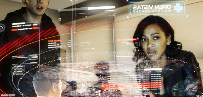 When a paranoid pre-cog handler Wally is approached by Detective Vega, he asks her “Is your contact lens still recording?” It’s a sensible question in the future, Borenstein says. “Law enforcement on our show wear augmented reality contact lenses and cameras are a key part of that interface. They’re basically an evolved version of the body camera cops wear today.”
