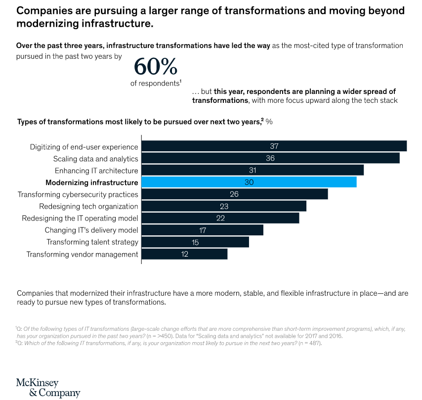 - Is transforming your company’s tech one of the top two priorities in your C-suite? If not, why not?