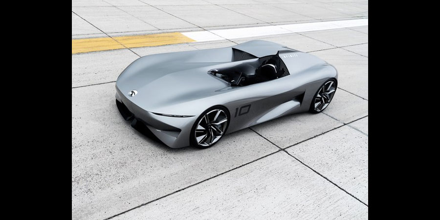 Today, Infiniti takes its turn with the reveal of the Prototype 10, a four-wheeled rendition of a land-lubbing manta ray. The car sits halfway between two concepts Infiniti has shown in the past year: the Prototype 9, a fully electric retro-style racer with exterior wheels with room for one that made its debut at last year’s Concours, and the Q Inspiration, the svelte sedan that wowed crowds at January’s Detroit Auto Show.