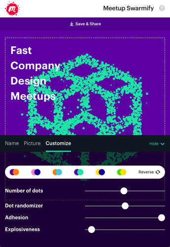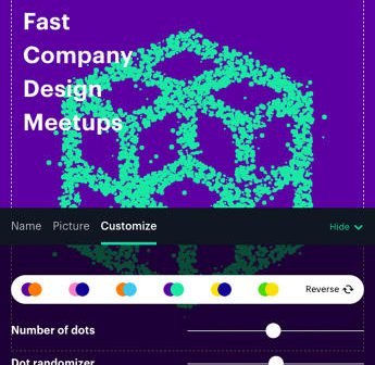 But the new identity needed to succeed outside of digital. It needed to be a proper branding system. “This needed to be easy to work in the real world,” Gergen says, because the whole point of Meetup is to get people talking face-to-face. Previously, Meetup had 27 million members, spread across 250,000 groups, but no branding system that allowed these group members to easily find each other in the real world. With the new identity, though, that changes. “It’s flaggable,” Gergen says, referring to the way the distinct “swarming” cursive can be used to write out the name of individual Meetup groups thanks to a dedicated web app, then printed out to serve as a flag in the real world for members. Nor do individual groups’ branding options end there: they can also choose duo-tone image headers for their group, giving individual groups a similar look to Apple Music’s category pages.