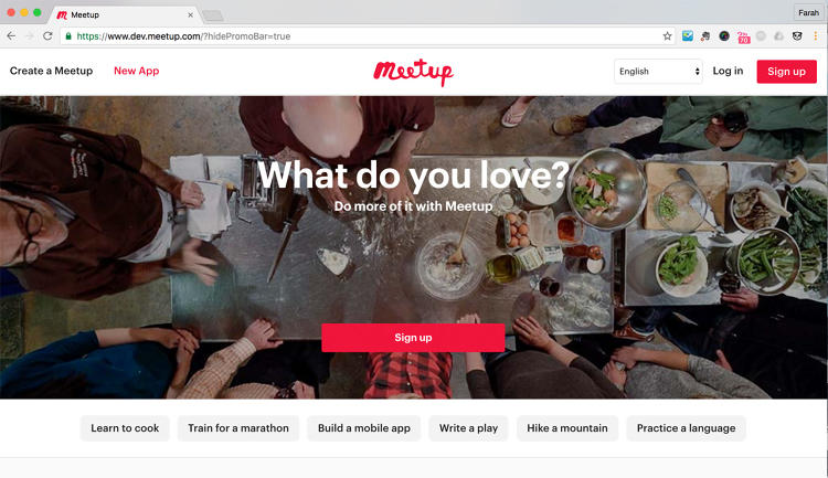 Part of that is by design. If Meetup does its job right, you’re not spending that much time on it at all. The site exists to facilitate offline friendships and experiences, through groups dedicated to particular hobbies and interests. But even so, Meetup’s existing design didn’t help. It was functional, but not sexy, a platform that looked appropriate for grandmas looking for knitting circles than, say, twenty-somethings searching out ultimate frisbee leagues.