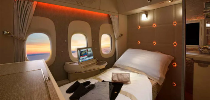 This week, Emirates unveiled a first-class cabin, aboard its Boeing 777-300ER planes, that has only virtual windows made up of digital screens that display the landscape as fiber-optic cameras outside the plane record it. As Emirates’s president Tim Clark told the BBC, the airline’s goal is to bring fake windows to all airplanes in the future.